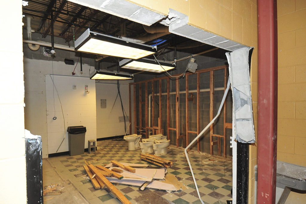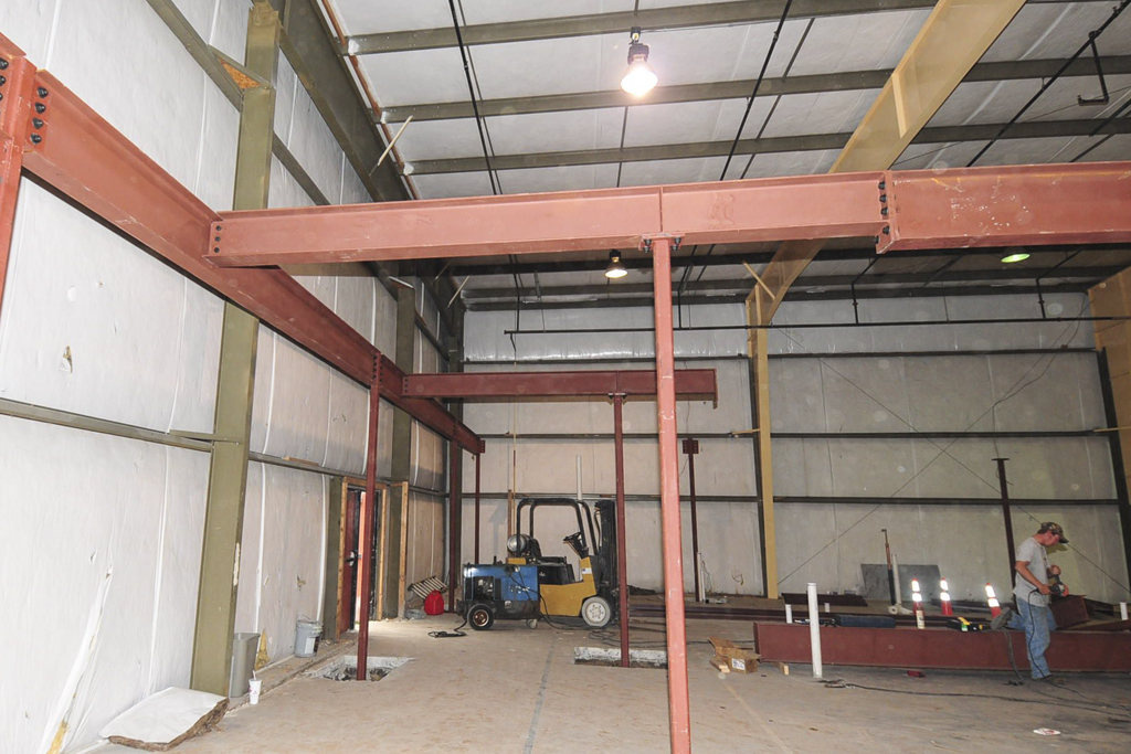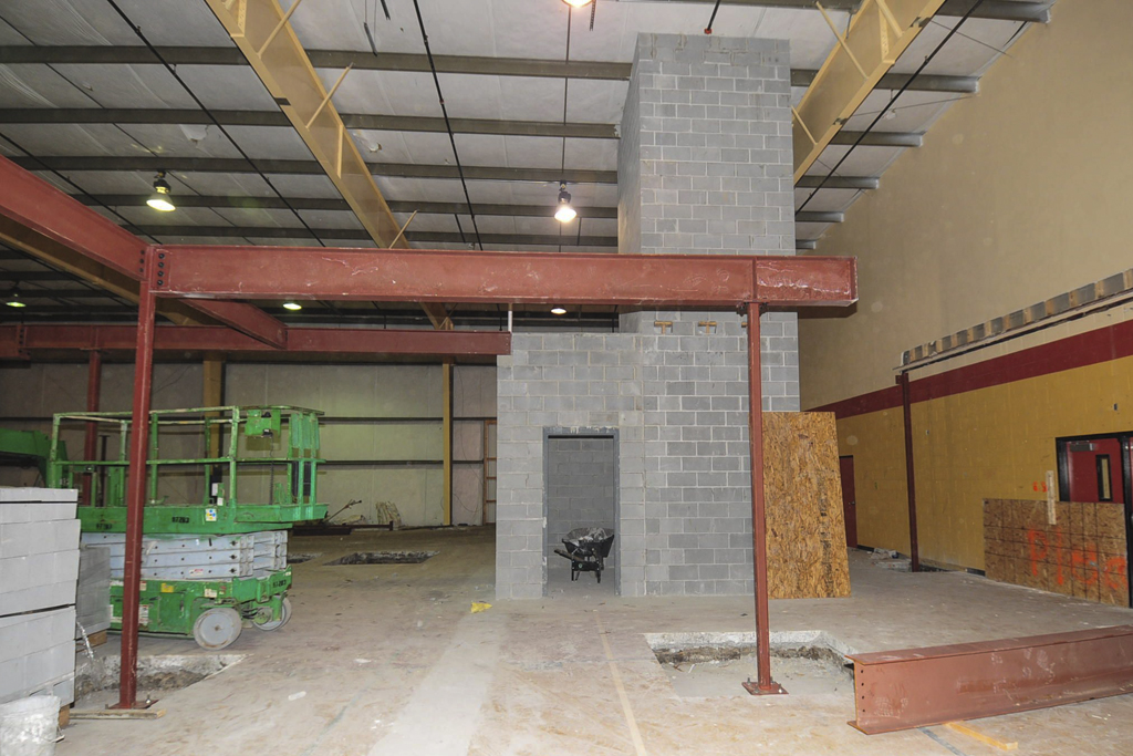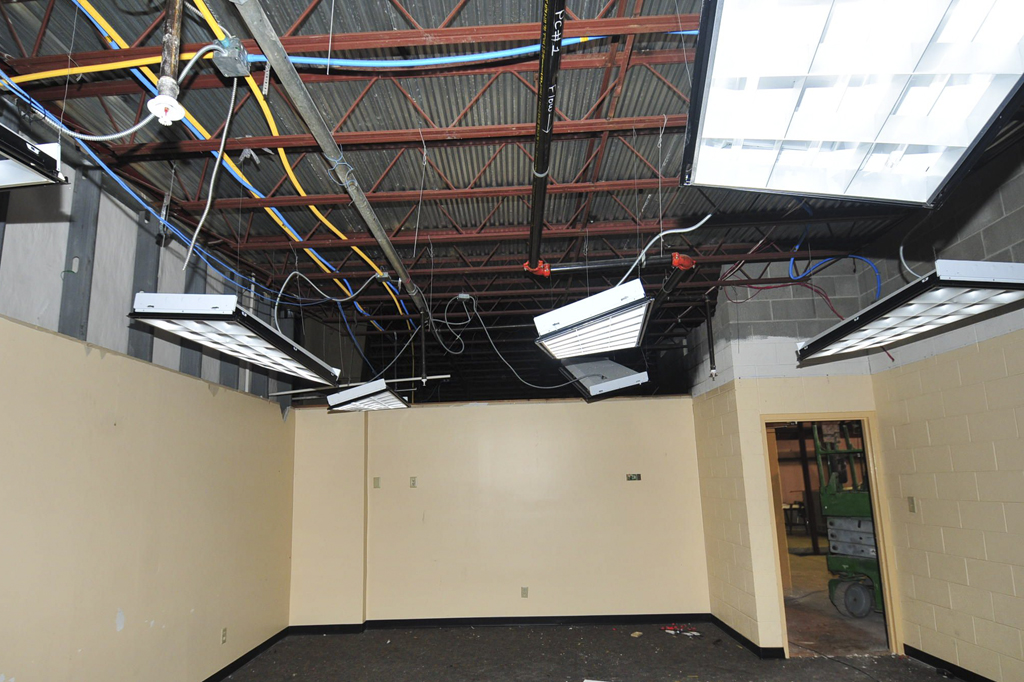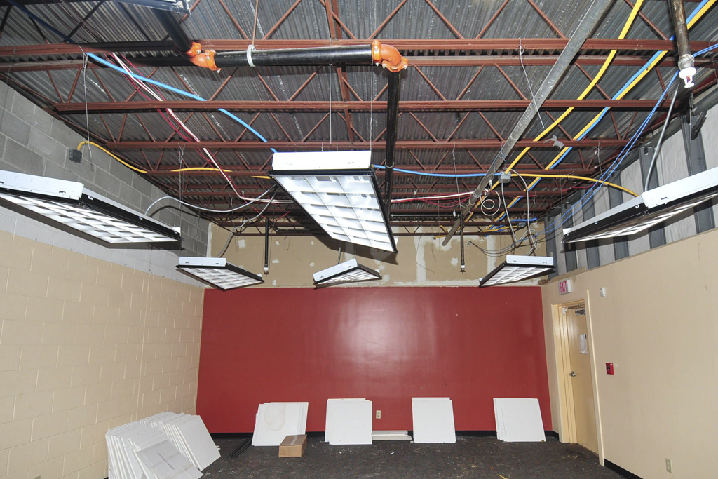 Steel framing for the new second floor is going up in the gymnasium. Interior walls are are being taken down in preparation for the new room layout. Electrical and plumbing rough-ins are underway.
