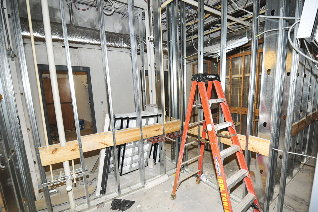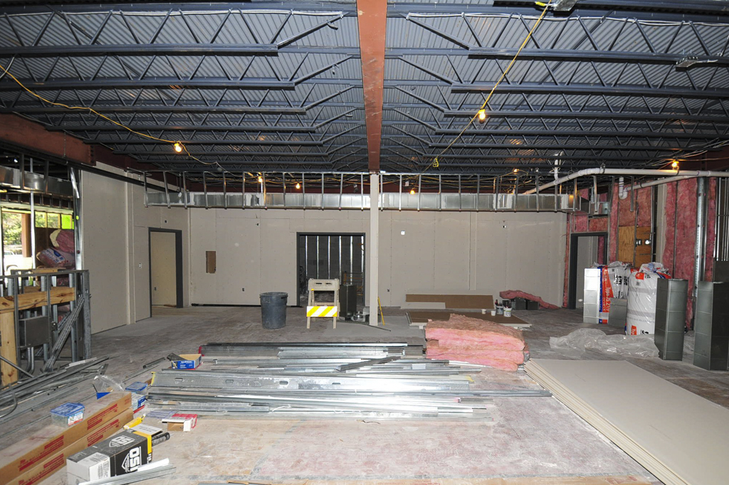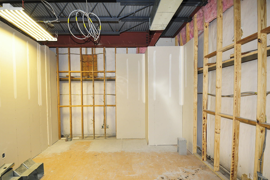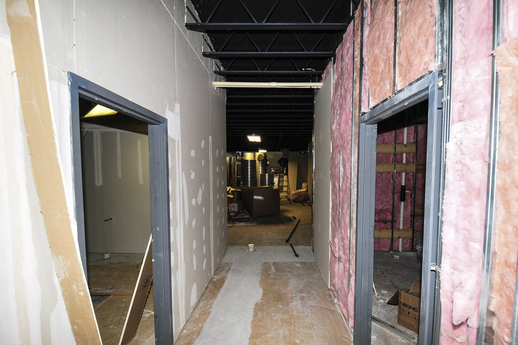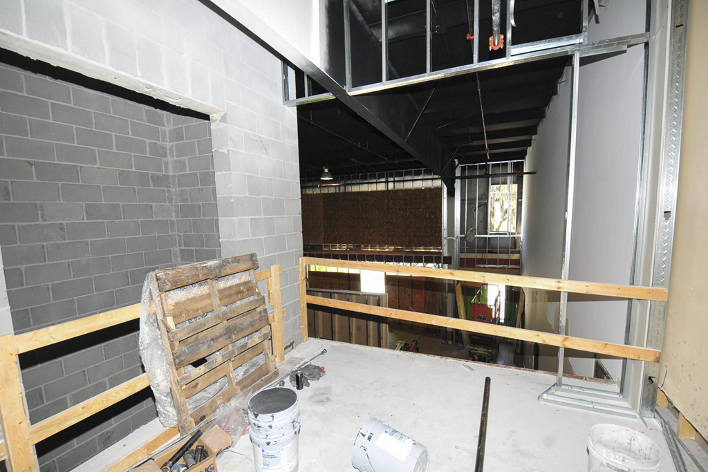 This month we have made significant progress framing the interior walls on both floors. We have started to put up drywall. The new entrance is being constructed. Work on the mechanical, electrical and plumbing rough-ins continues. The next major milestone will be the installation of the elevator.