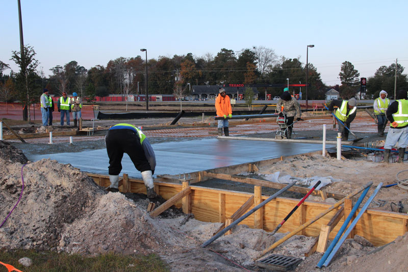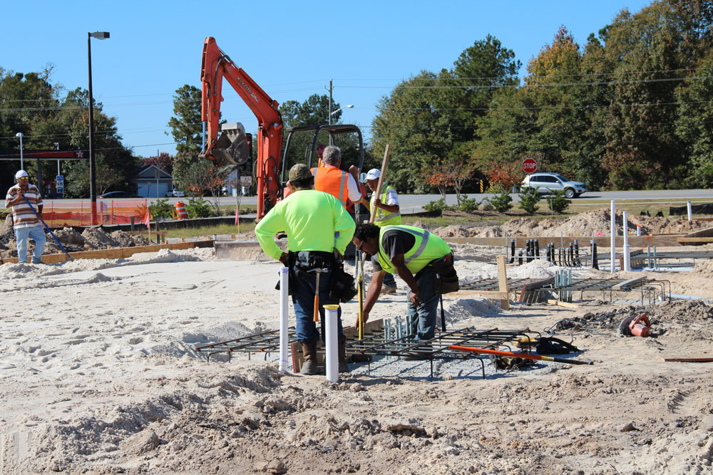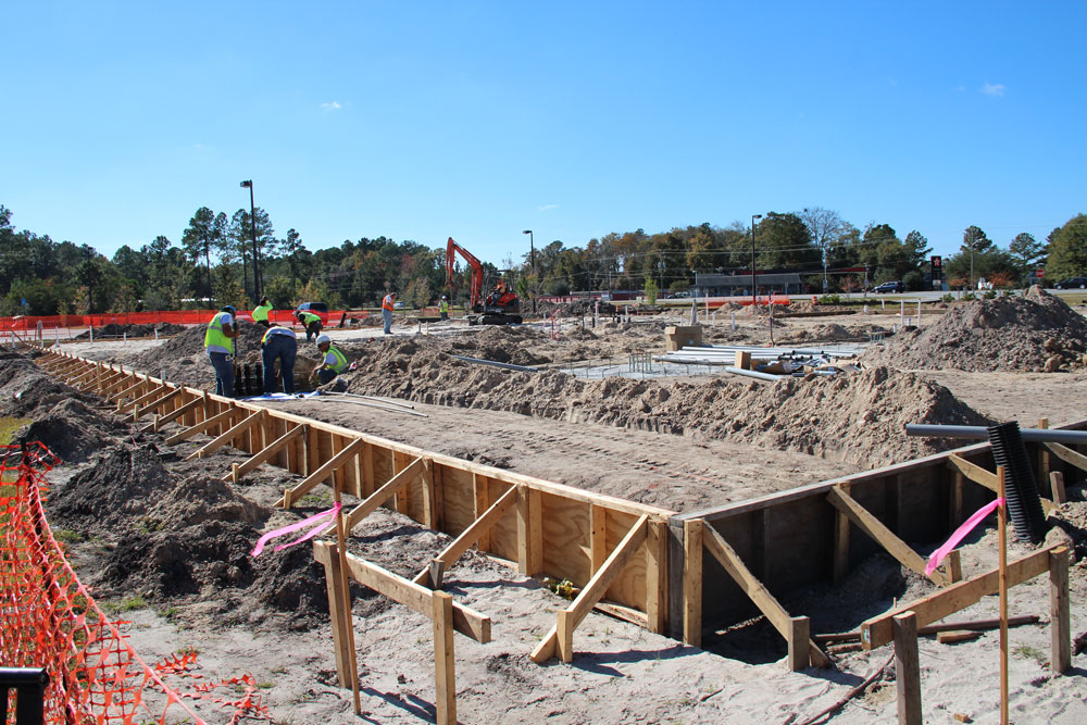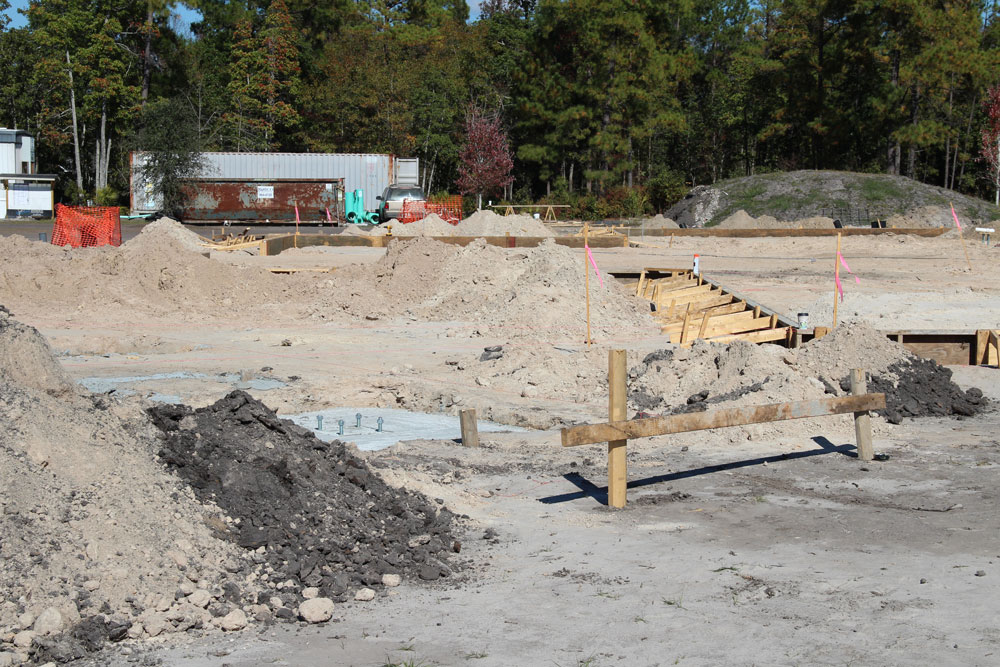Preparation for our new building continues. The extra dirt from the pond expansions was spread out to fill the side of the property so we'll reclaim some of the green space lost due to the placement of the new building. This green space will be valuable for future outreach events like Easter Buddy and Country Carnival. At the end of the month we started to pour concrete for the slab foundation.