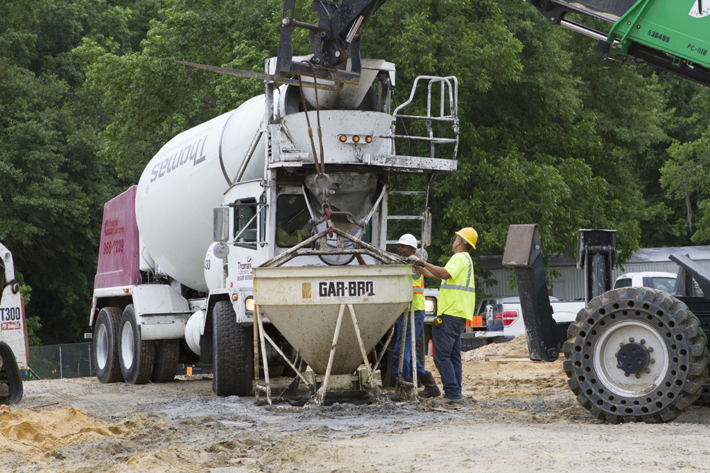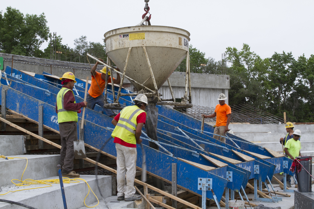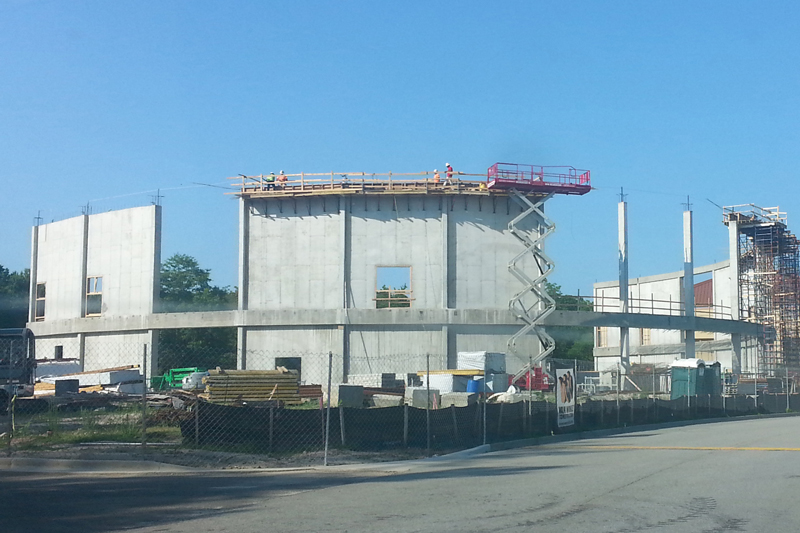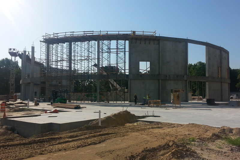 All slab-on-grade is in place along with the base course of asphalt. The utilities are complete. Work continues on the seating risers. When we broke ground on the Henderson Worship Center in January, we wrote the name of our One on a flag and placed it in the ground where the building would be built. This month we concereted these flags into the new Worship Center foundation under the seating risers.