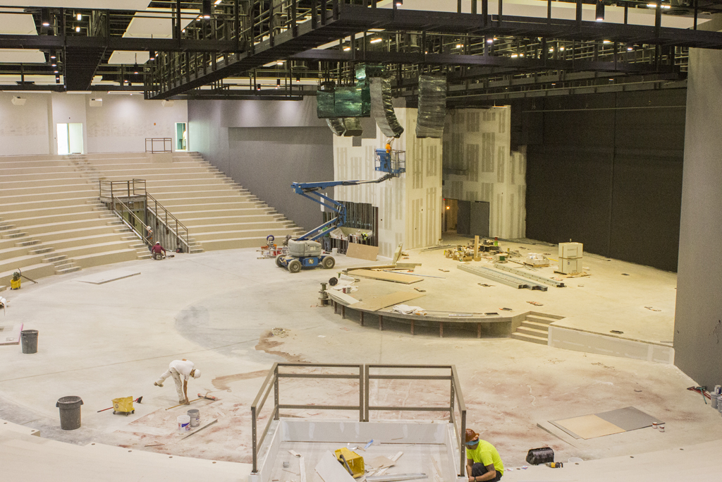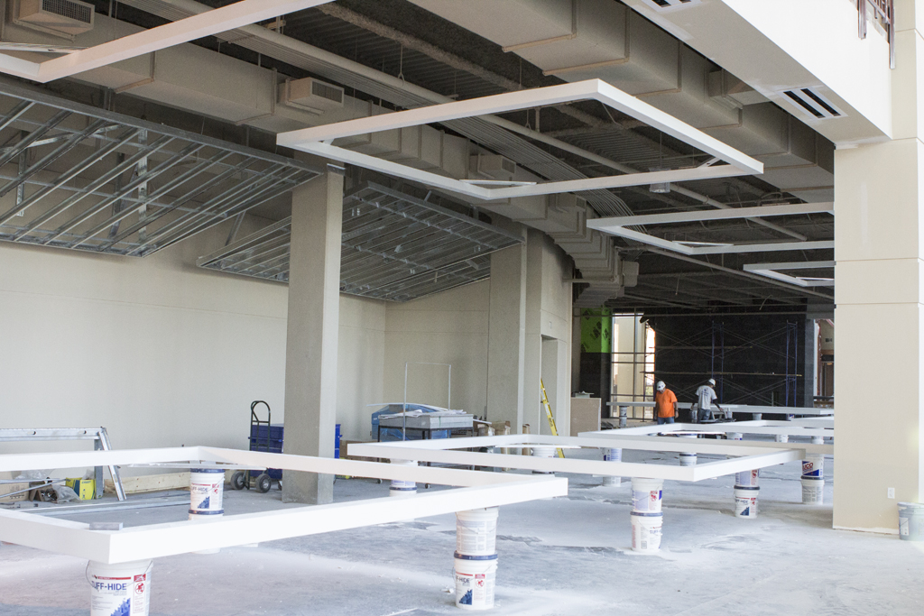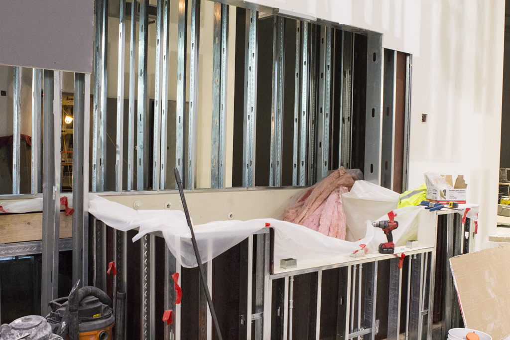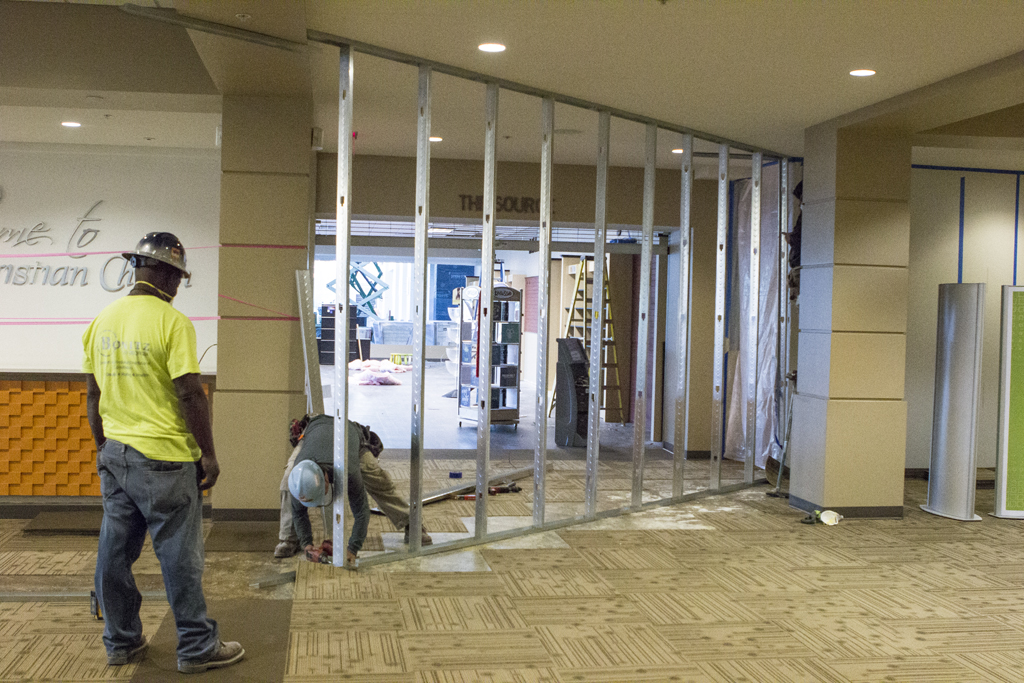 The final site work has begun! The drywall is nearly complete and painting is underway all over the building. Stonework is in progress on some of the exterior walls. And the wall has come down between the new lobby and The Source bookstore, and we are connecting the two buildings.