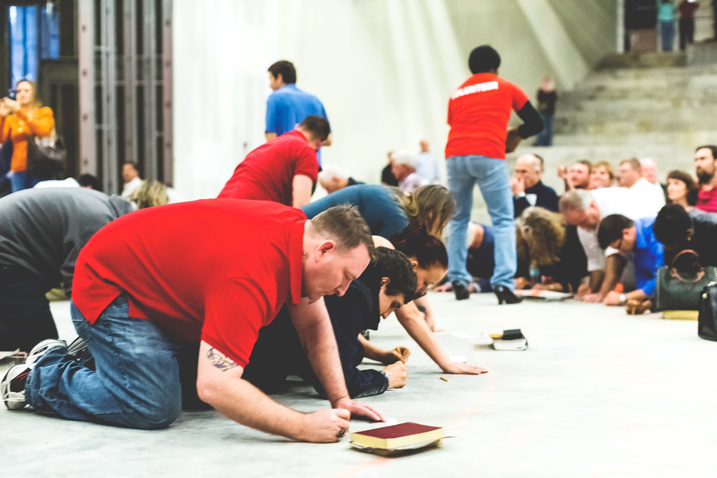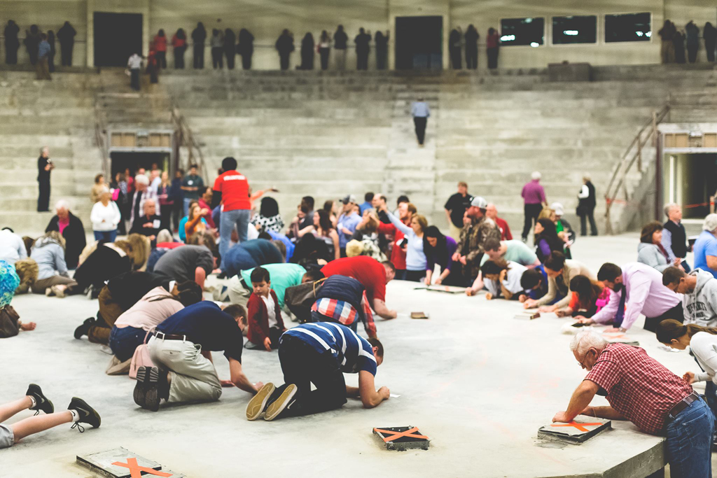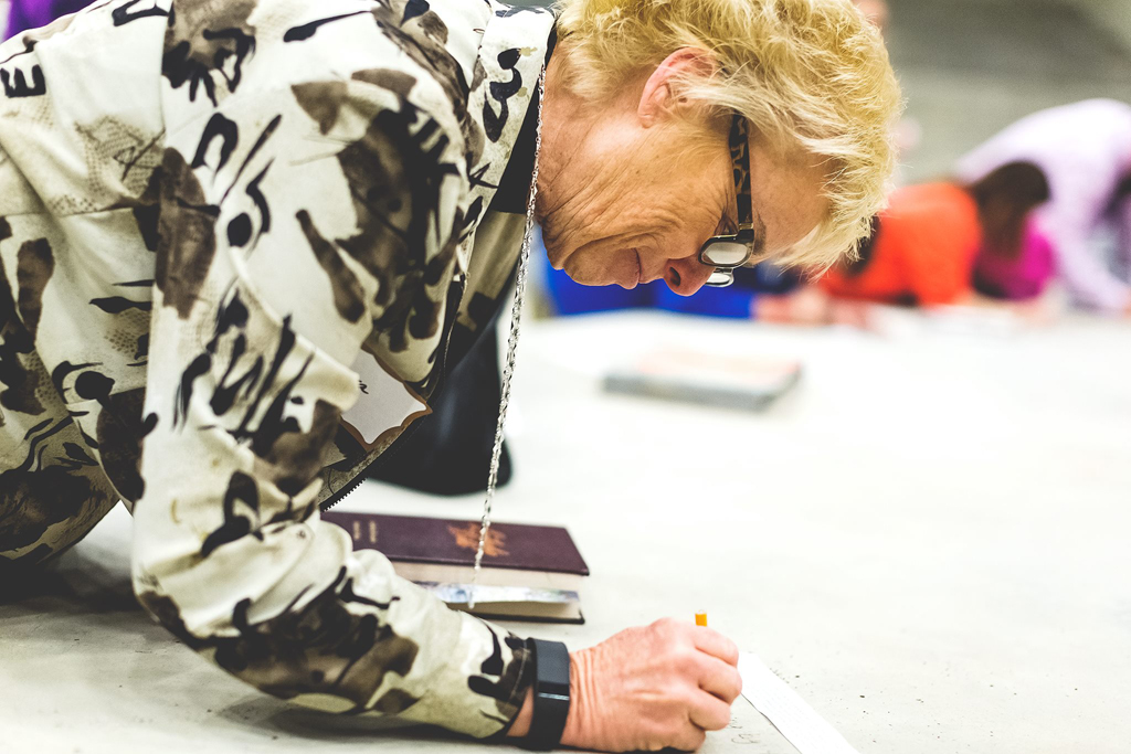 We wrote the entirety of the New Testament on the floor and walls of the new Worship Center. Each person was given a piece of paper with several verses on it to write on the wall, floor or platform of the new auditorium.