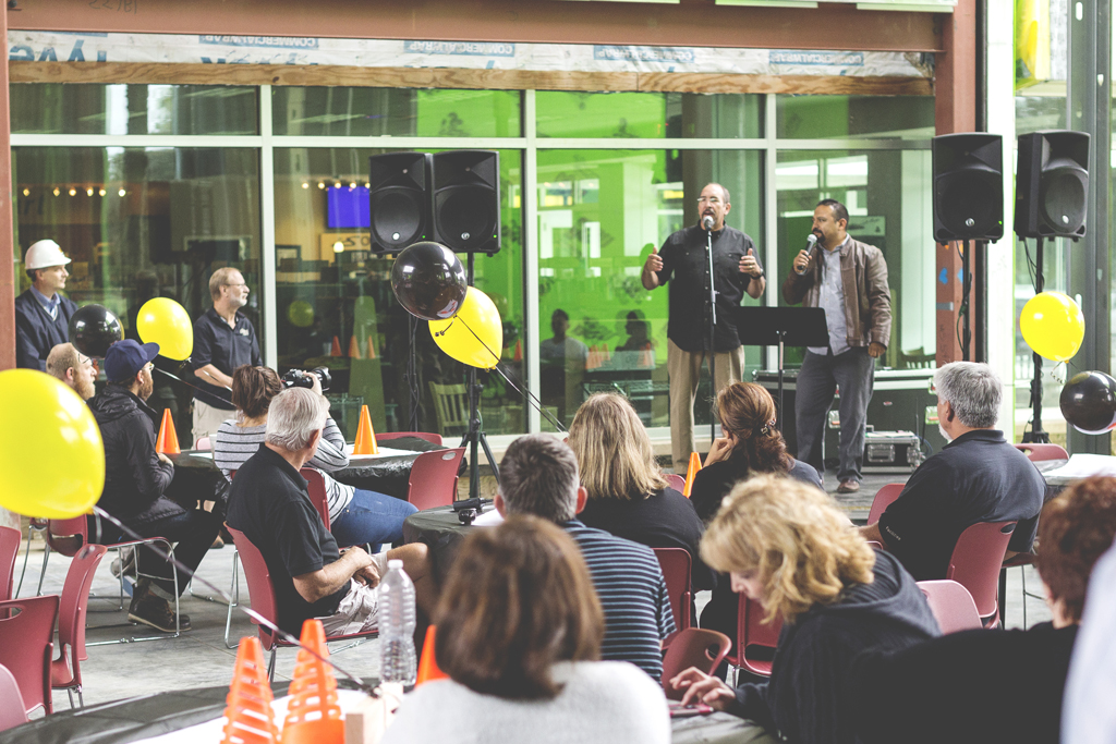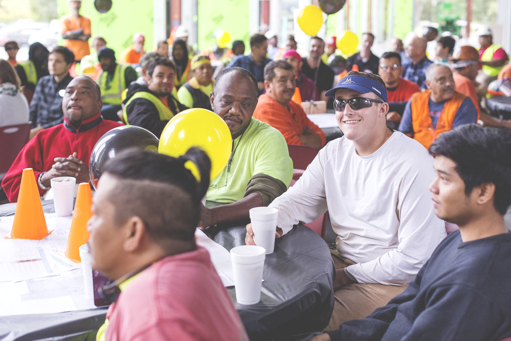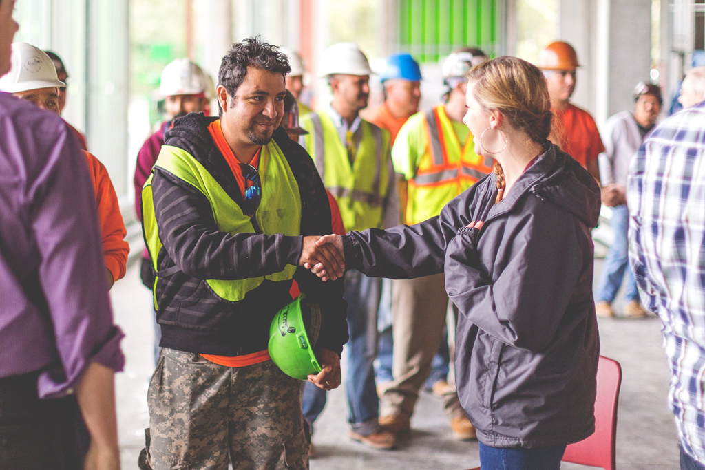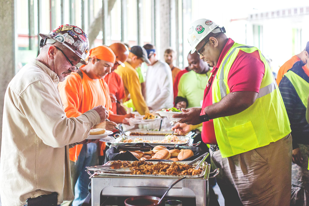 Our staff celebrating the "topping out" of the Henderson Worship Center, a point in construction with the highest point of the building is in place. We had lunch with the construction workers, giving thanks for their hard work on a building that will change lives for many years to come.