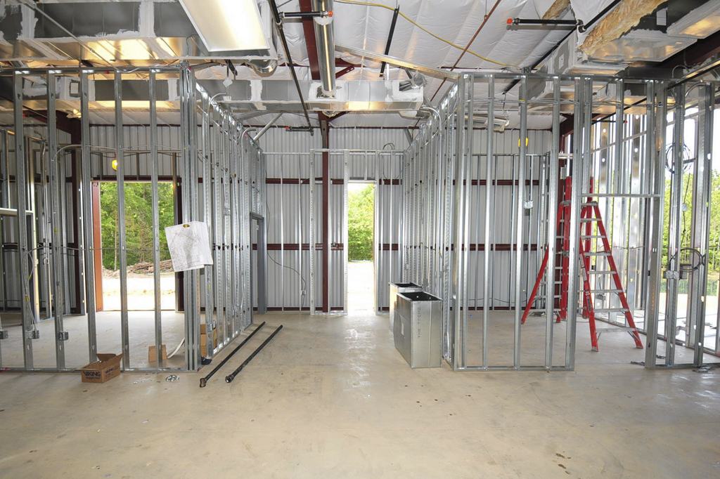 Work continues on schedule on the Worship Center and office building. Interior wall framing is nearly complete, and work has begun on the exterior walls. Mechanical, electrical and plumbing rough-ins have begun.