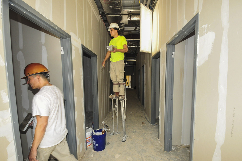 The walls in the children's and student ministry building have been framed. The walls in the worship center and office building have been insulated and sheetrock has been put up.